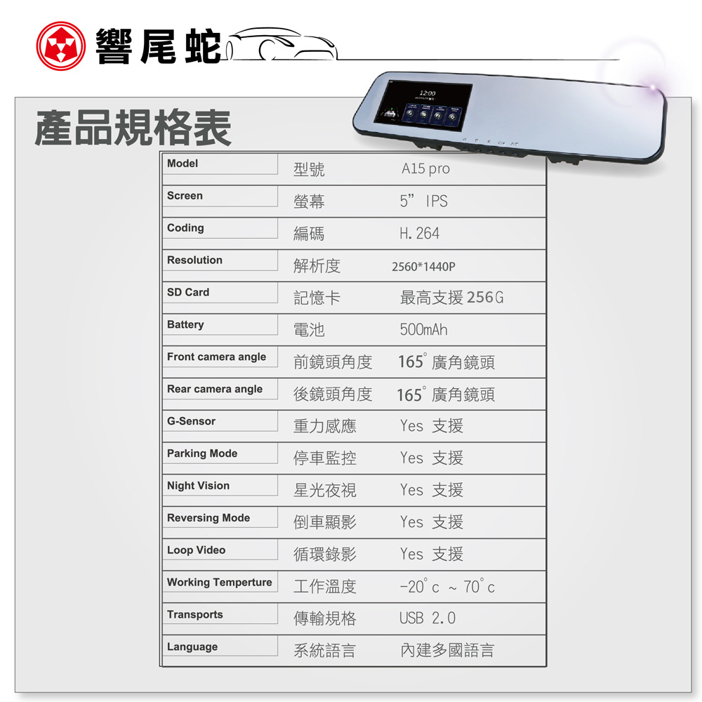 ● 前後165度超廣角鏡頭